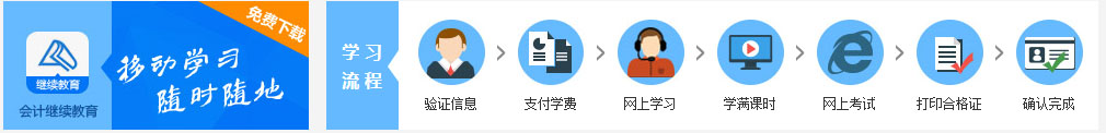 | 密碼登錄,登錄后自行選擇課程學(xué)習(xí);學(xué)滿規(guī)定課時(shí)后,進(jìn)入考試程序,考試成績合格后自行打印培訓(xùn)合格證;憑合格證和會(huì)計(jì)從業(yè) |