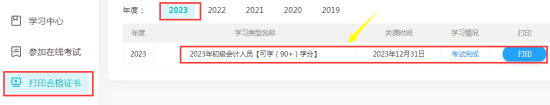 打印合格證書   考試合格后,打印合格證書,可不用到財政部門登記,由財政部門在江蘇省會計人員信息管理系統中記載。