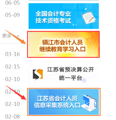 首先我們要登錄鎮江市財政局官方網站,在右側找到鎮江市會計人員繼續教育學習入口。
