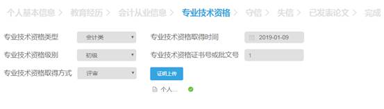 2. 專業技術資格取得時間、專業技術資格級別、專業技術資格證書號或批文號、專業技術資格取得方式:保證與證書信息一致;